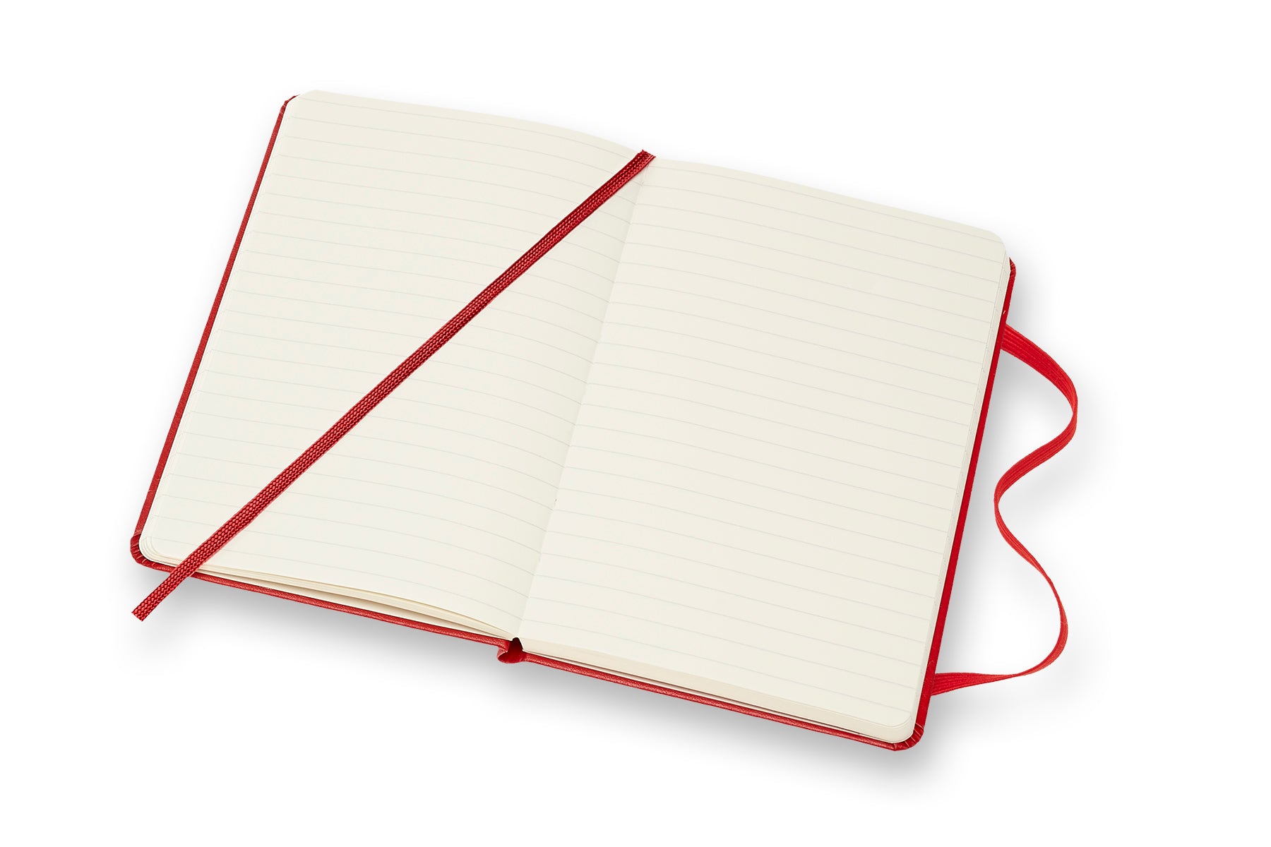 This basic, yet classic notebook is one of the bestselling Moleskine notebooks. This reliable travel companion, perfect for calculations, thoughts and passing notes, has a cardboard bound cover with rounded corners, acid free paper, a bookmark, an elastic closure, and an expandable inner pocket that contains the Moleskine history.