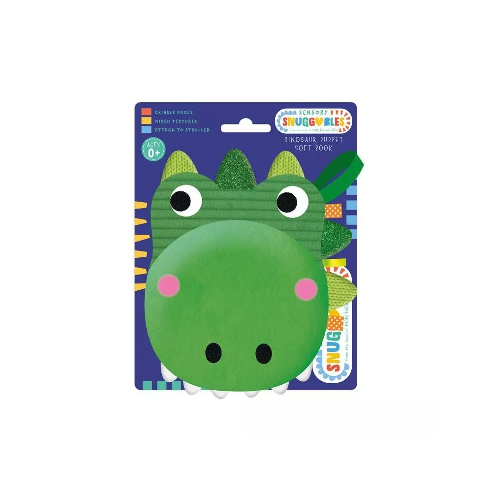 Dinosaur, Dinosaur, can you roar? Join the dinosaurs in this roarsome addition to our Sensory Snuggables range. With pockets in the front and back cover, this cloth book doubles up as a dinosaur hand puppet, perfect for imaginary play. Have fun exploring the touch-and-feel cover then discovering the surprise crinkles inside. Adorable illustrations and simple text introduce funny dinosaurs throughout.