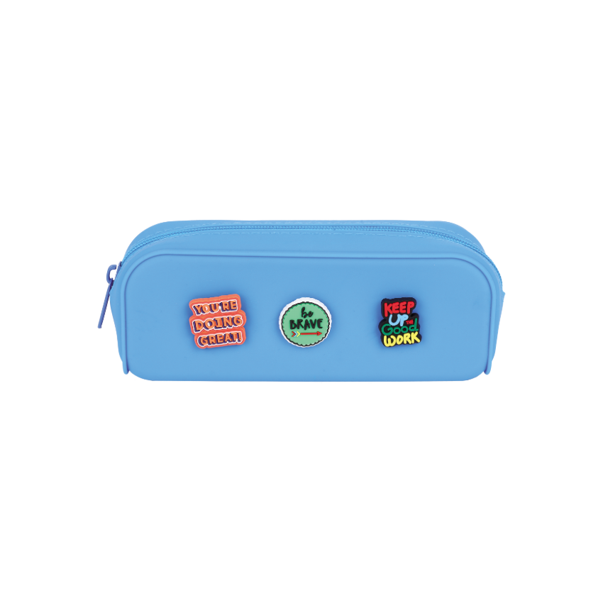 Blue Silicone Pencil Case with Charms
