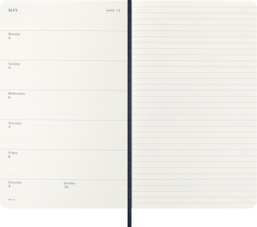 Formatted to show the week's appointments on the left and a ruled page for notes and ideas on the right, it is a handy and versatile planner that incorporates the freedom of a notebook.