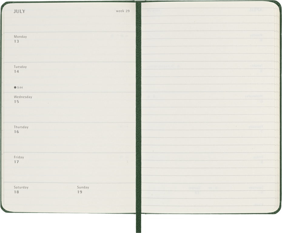 Formatted to show the week's appointments on the left and a ruled page for notes and ideas on the right, it is a handy and versatile planner that incorporates the freedom of a notebook.