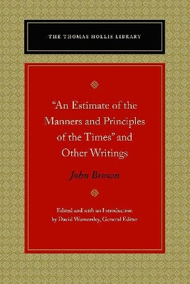 John Brown (17151766) was a clergyman who achieved great but transient fame as a writer and moralist. His attack on Shaftesbury and moral sense philosophy, against which he employed utilitarian arguments and also arguments deriving from Gods benevolent intentions toward his creation, was published in 1751 and was later praised by John Stuart Mill. The central text of this volume, An Estimate of the Manners and Principles of the Times (1757), is a vigorous attack on the vain, luxurious, and selfish effeminacy of Englands higher ranks, in the wake of the loss of Minorca to the French at the opening of the Seven Years War (17561763). Brown repeated the usual complaints of corruption that had been raised during the premiership of Walpole and argued that public virtue had been undermined by a preoccupation with luxury and commerce. Estimate was printed no fewer than seven times within the first year, earning the author the name Estimate Brown. Alongside Estimate, the volume includes four other works by Brown: his poem On Liberty (1749); his Essays on the Characteristicks (1751), which is an attack on Shaftesburys Characteristicks; his Explanatory Defence of the Estimate (1758), in which Brown engaged to defend the work, to some modest extent, against his critics; and finally, a late work, Thoughts on Civil Liberty (1765). Two appendixes complement the texts: a brief tribute to Brown by Thomas Hollis (an Englishman who devoted his life to the cause of liberty and for whom this series is named), in which Hollis depicts Brown as a weak man who nevertheless possessed a measure of virtue and talent, and who fell among thieves in the feral literary and political circles of Hanoverian England. The second appendix provides Holliss own annotations to his copy of Estimate. The introduction, by David Womersley, places Browns writings and career in the context of eighteenth-century moralism and, naturally, in the tradition of British writing on liberty. The annotations will gloss now-unfamiliar words and explain now-obscure references to contemporary events, circumstances, and personalities.