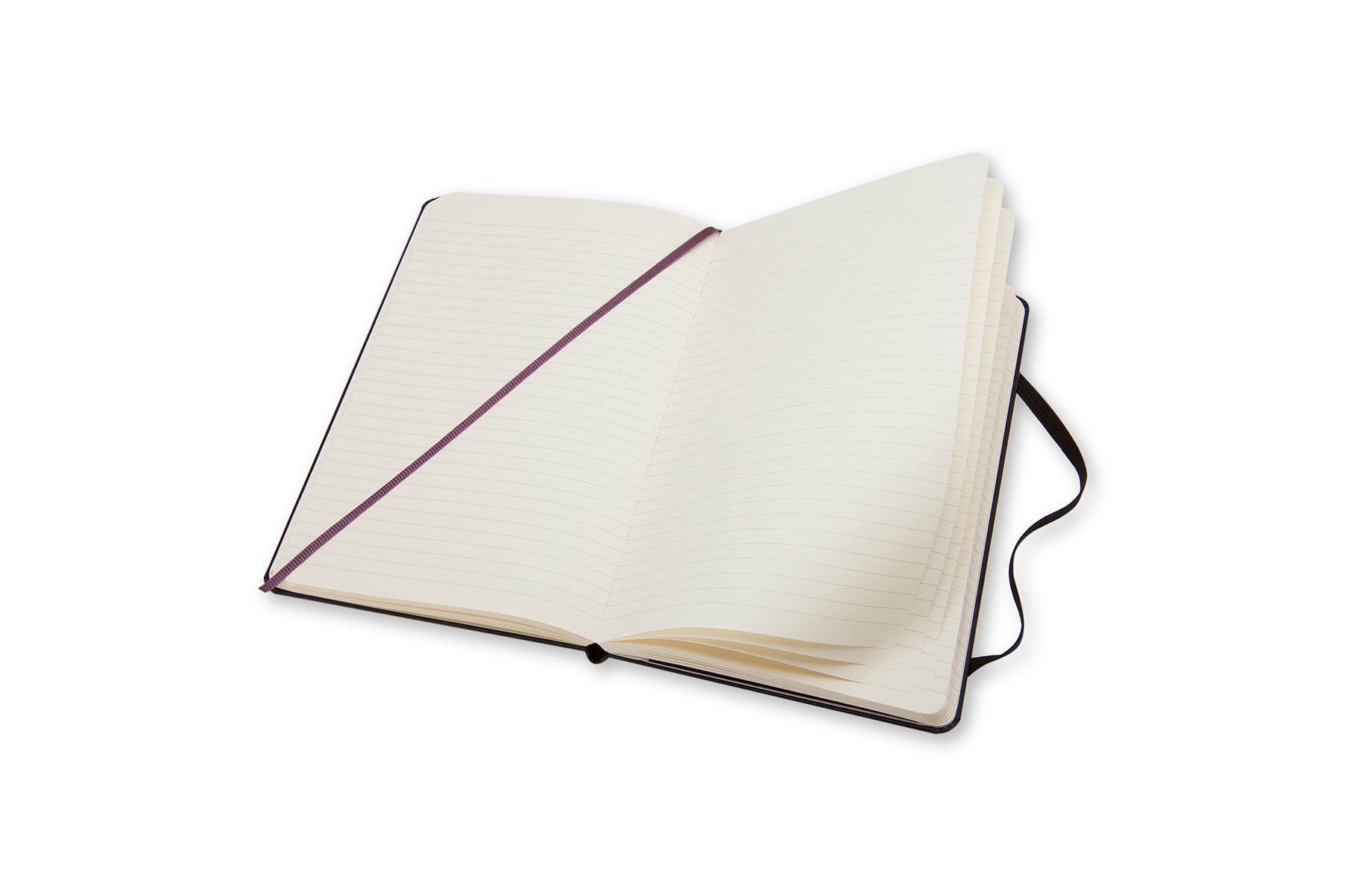 This basic, yet classic notebook is one of the bestselling Moleskine notebooks. This reliable travel companion, perfect for calculations, thoughts and passing notes, has a cardboard bound cover with rounded corners, acid free paper, a bookmark, an elastic closure, and an expandable inner pocket that contains the Moleskine history.
