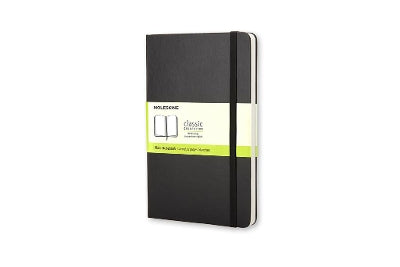 This basic, yet classic notebook is one of the bestselling Moleskine notebooks. This reliable travel companion, perfect for calculations, thoughts and passing notes, has a cardboard bound cover with rounded corners, acid free paper, a bookmark, an elastic closure, and an expandable inner pocket that contains the Moleskine history.